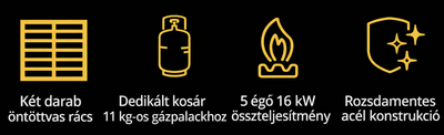 | Rostély anyaga | öntöttvas |