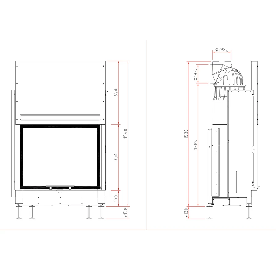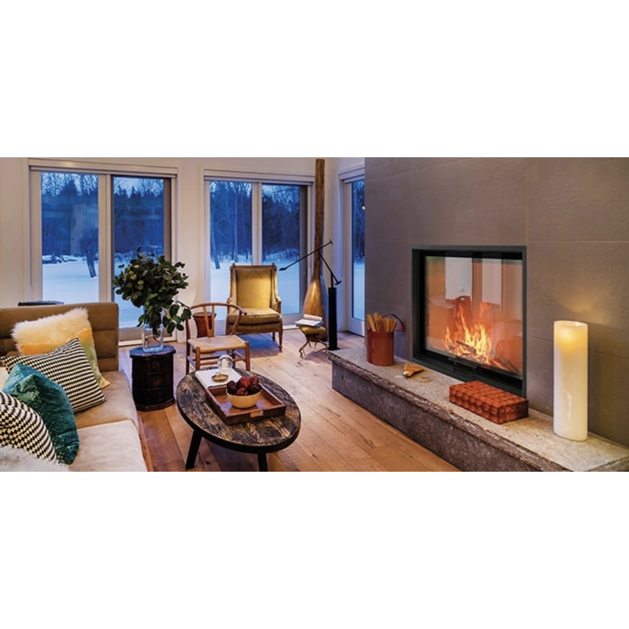 A magas üvegfelület különleges térérzetet ad: a lángok nemcsak szélesen, hanem felfelé is érvényesülnek, így a kandalló valódi fókuszponttá válik a nappaliban. A tűz látványa monumentálisabb, dinamikusabb, miközben a letisztult keret minimalista eleganciát sugároz.